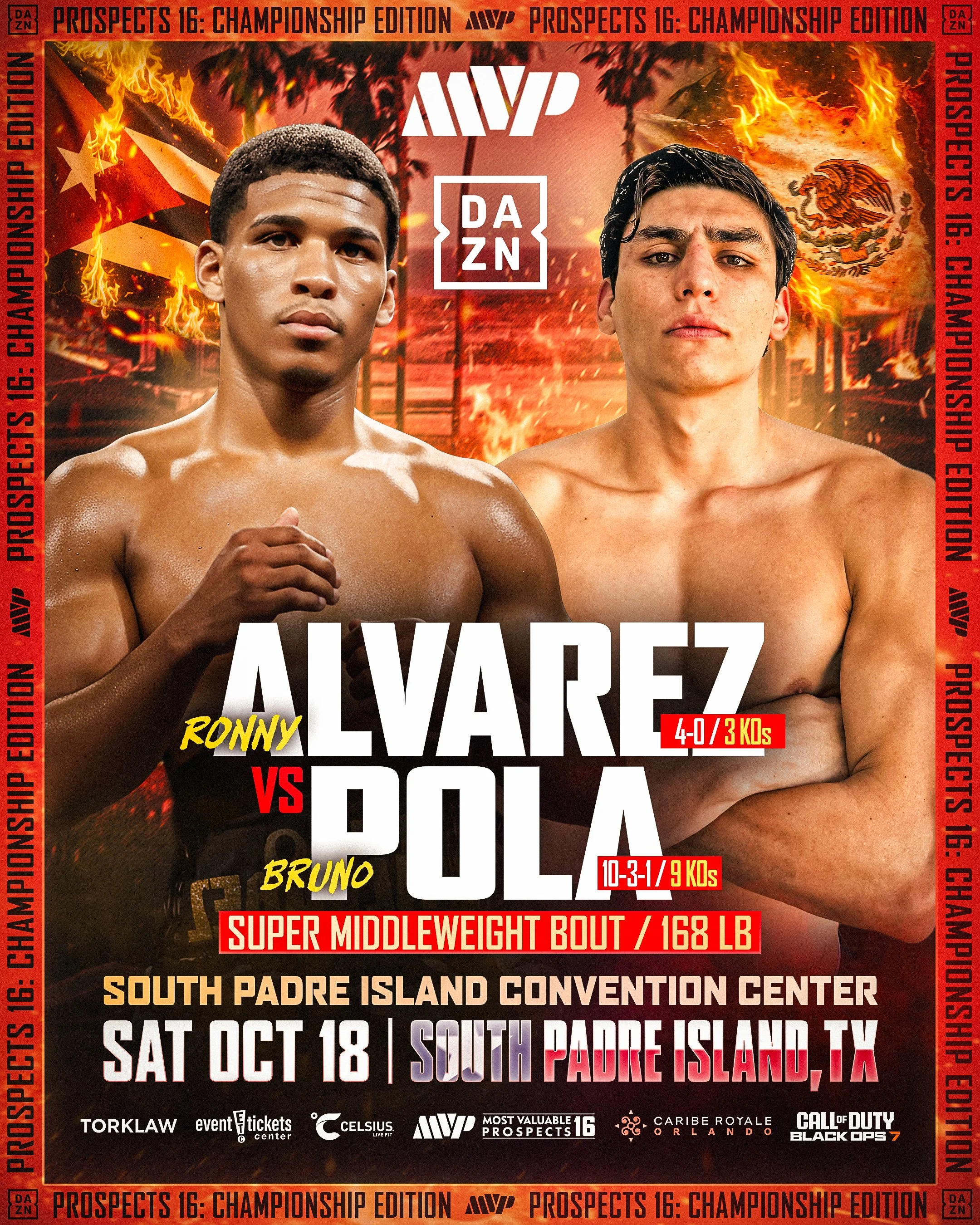 Recent Boxlab signee, undefeated Cuban Ronny Alvarez (4-0) returns to action at ‘Most Valuable Prospects 16’ from South Padre Island in Texas, Saturday October 18th live on DAZN & MVP Youtube, as he takes on Bruno Pole (10-3-1). Watch highlights from Ronny’s recent victory at ‘Night of Champions XII’ as he defeated Ryan Adams by unanimous decision.